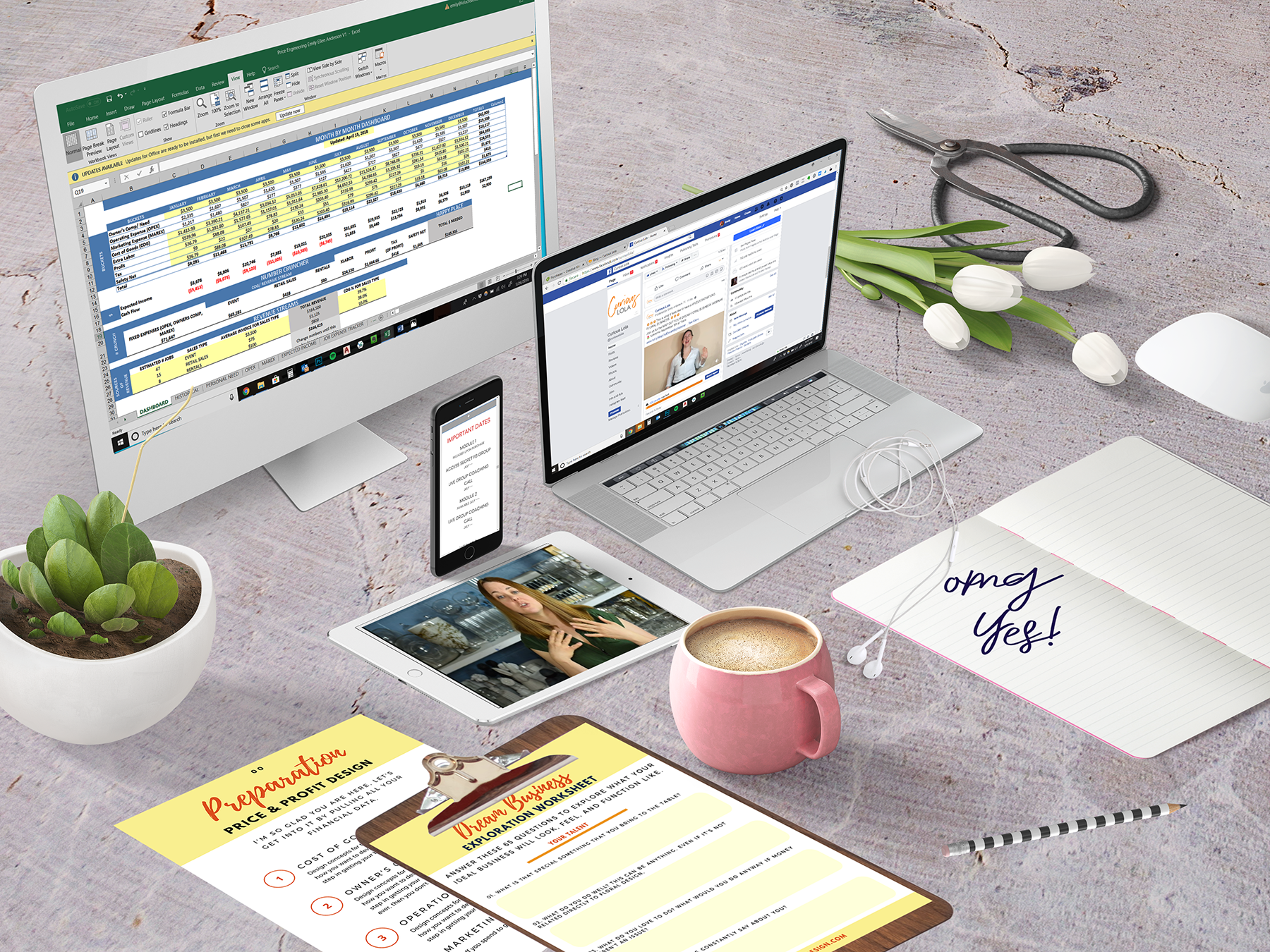 A: I can coach you with no tech knowledge. If you want to use the Price + Profit Design tools, you will need to first prep by taking an online training in basic spreadsheet function. There are free trainings on youtube, and sites like Lynda.com. You don't need to be a wiz, just hte basics will do. The spreadsheets are designed in a way where you will need to do minimal work. Mostly just data entry. We have some resources for you to learn this once you sign up.
